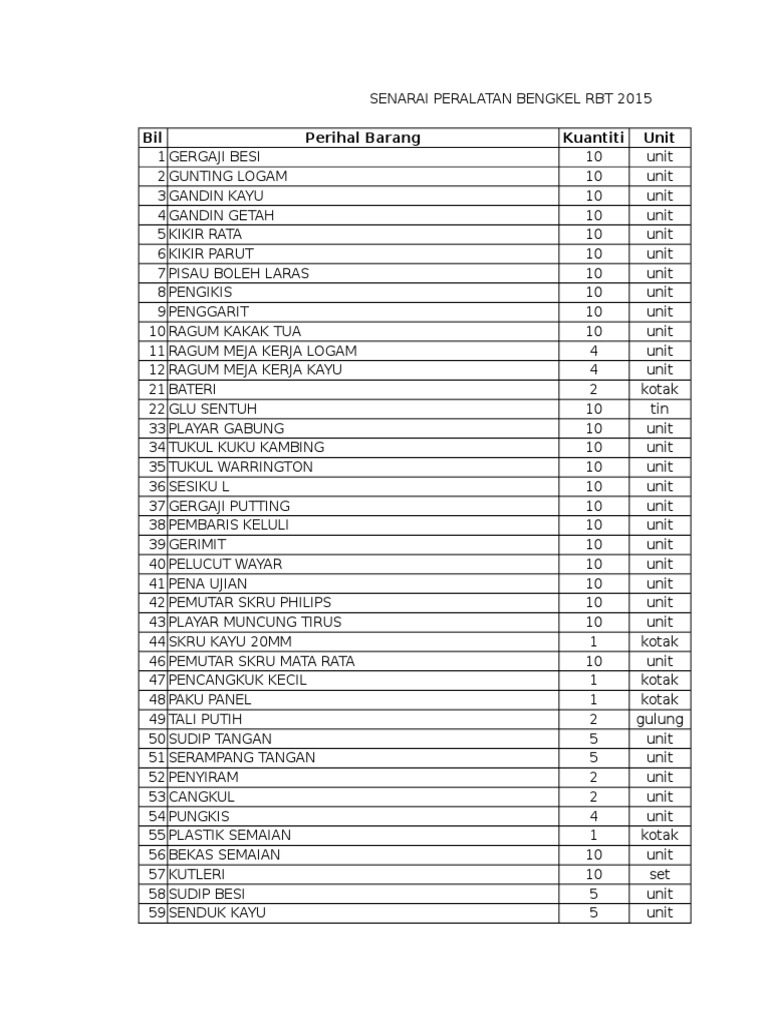 Nama Peralatan Bengkel Kereta Senarai Alatan Bengkel Xls Senarai Harga Peralatan Bengkel Kereta